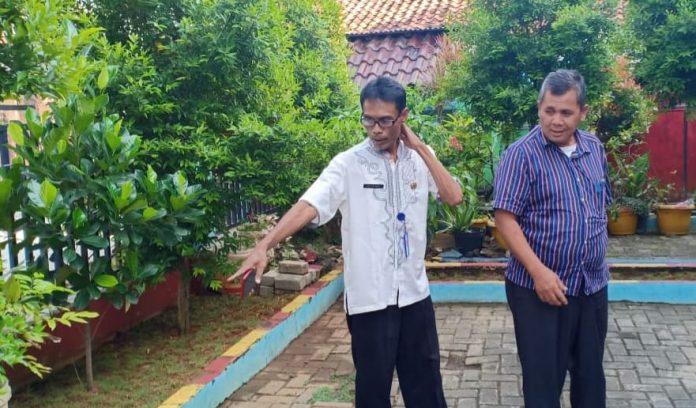 Sekretaris Kecamatan Batuceper Acep Suhardiman (kanan), saat melihat kondisi taman di kantor kelurahan wilayah Batuceper.