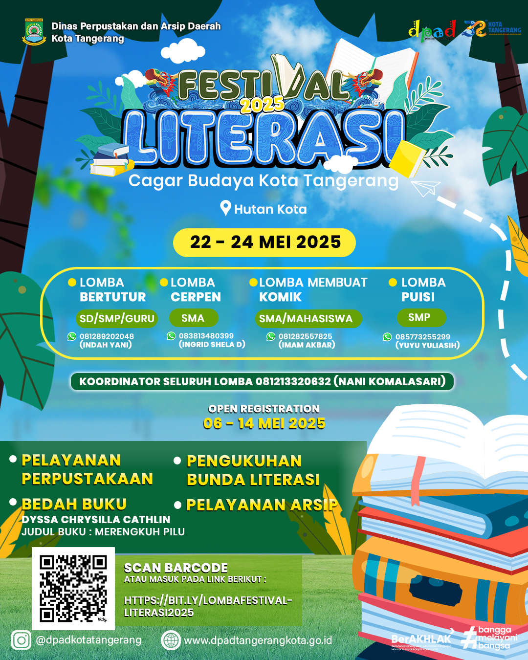 Sementara itu, Kepala Dinas Perpustakaan dan Arsip Daerah (DPAD) Kota Tangerang, Engkos Zarkasyi menyebut, Festival Literasi 2025 bertujuan meningkatkan minat dan budaya baca masyarakat Kota Tangerang.