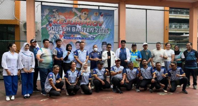 Kontingen Kota Tangerang yang menjuarai Cabor Squash pada Kejurprov Banten 2025.