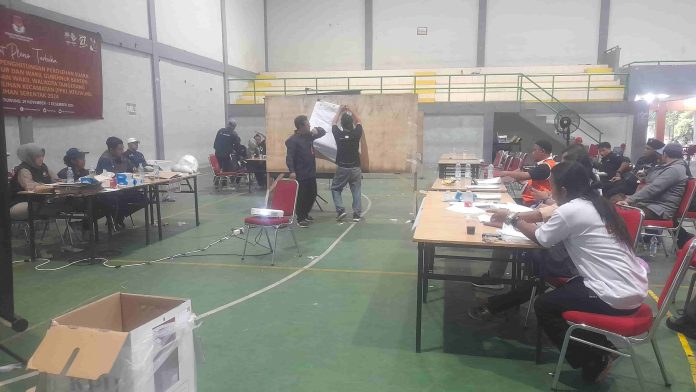 Pelaksanaan pleno perhitungan suara tingkat Kecamatan Jatiuwung di GOR Jatiuwung, Jumat (29/11).